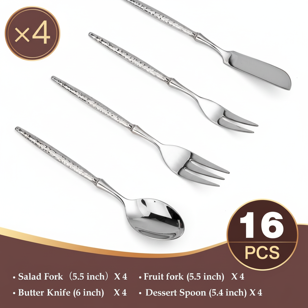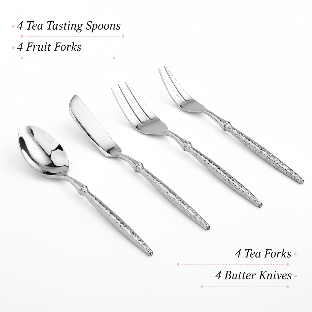 Inspired by the delicate elegance of ballet and the timeless appeal of hand-hammered metalwork, this 16-piece tea set brings artistic sophistication to your table. Each piece features a beautifully textured hammered finish and flowing lines reminiscent of a dancer's grace, creating a harmonious balance between strength and beauty.