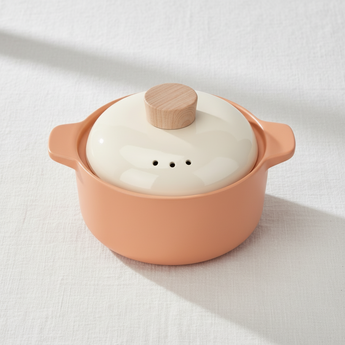 Korean-Style Ceramic Casserole Pot | Peach Stoneware Pot with Lid, 2.6L