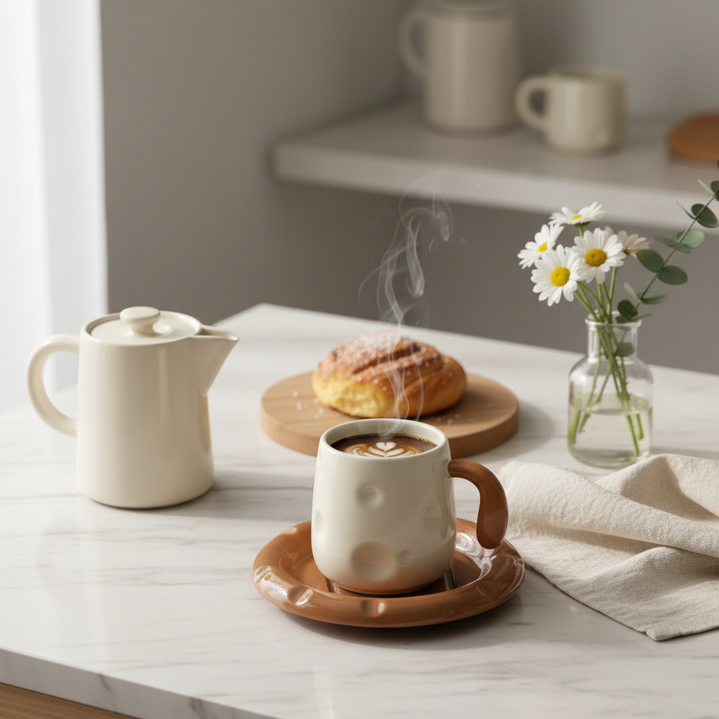 Brown Cheese Coffee Cup & Saucer Set | 260ml Nordic-Inspired Ceramic Set