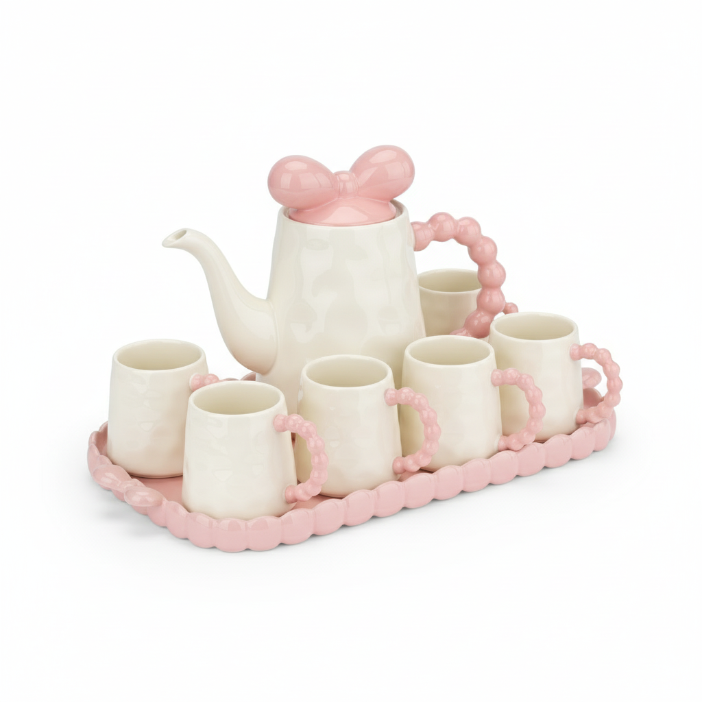 Butterfly Knot Water Set | Elegant Ceramic Jug with 6 Cups & Serving Tray
