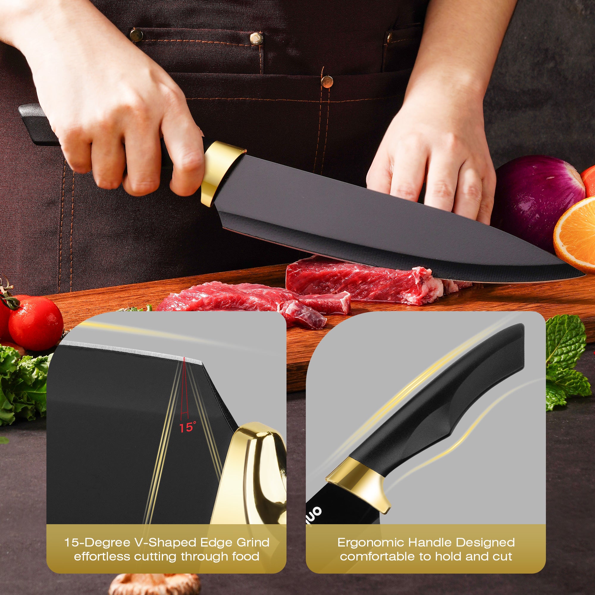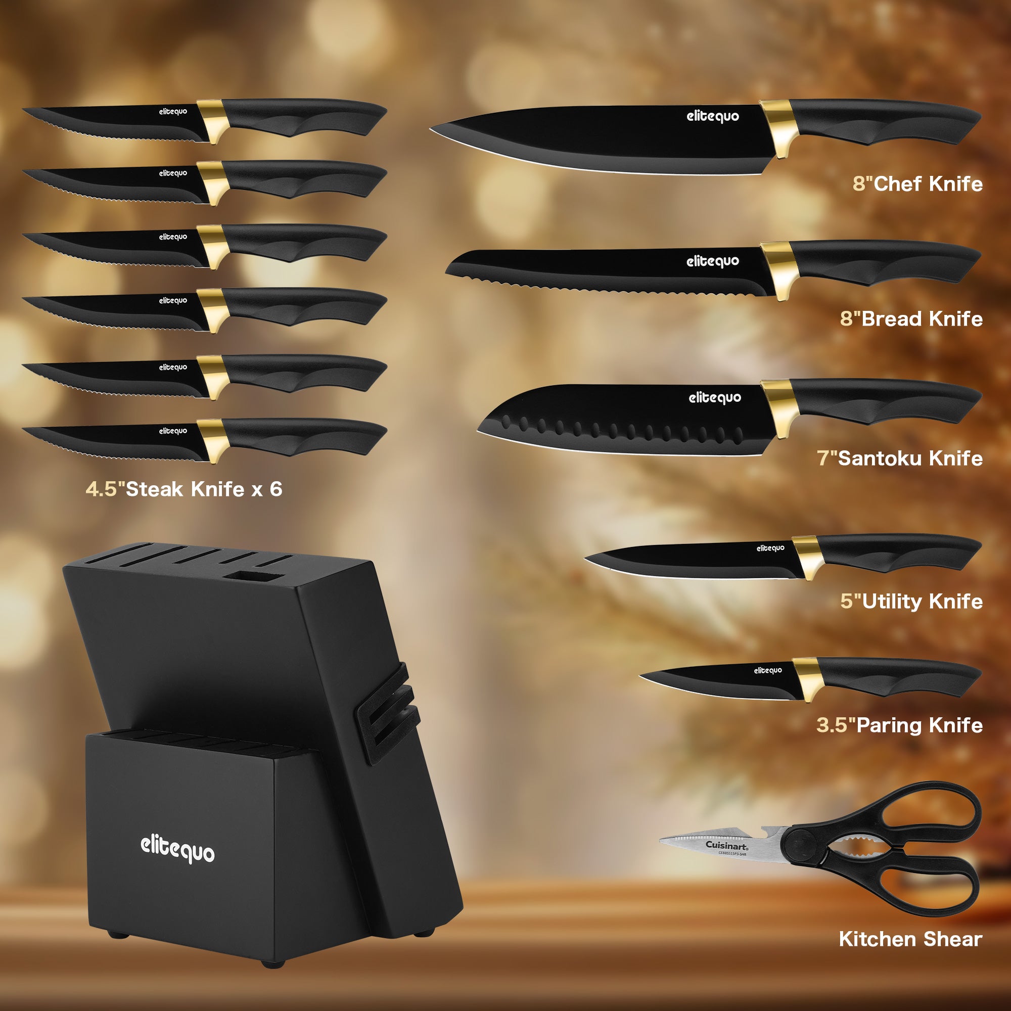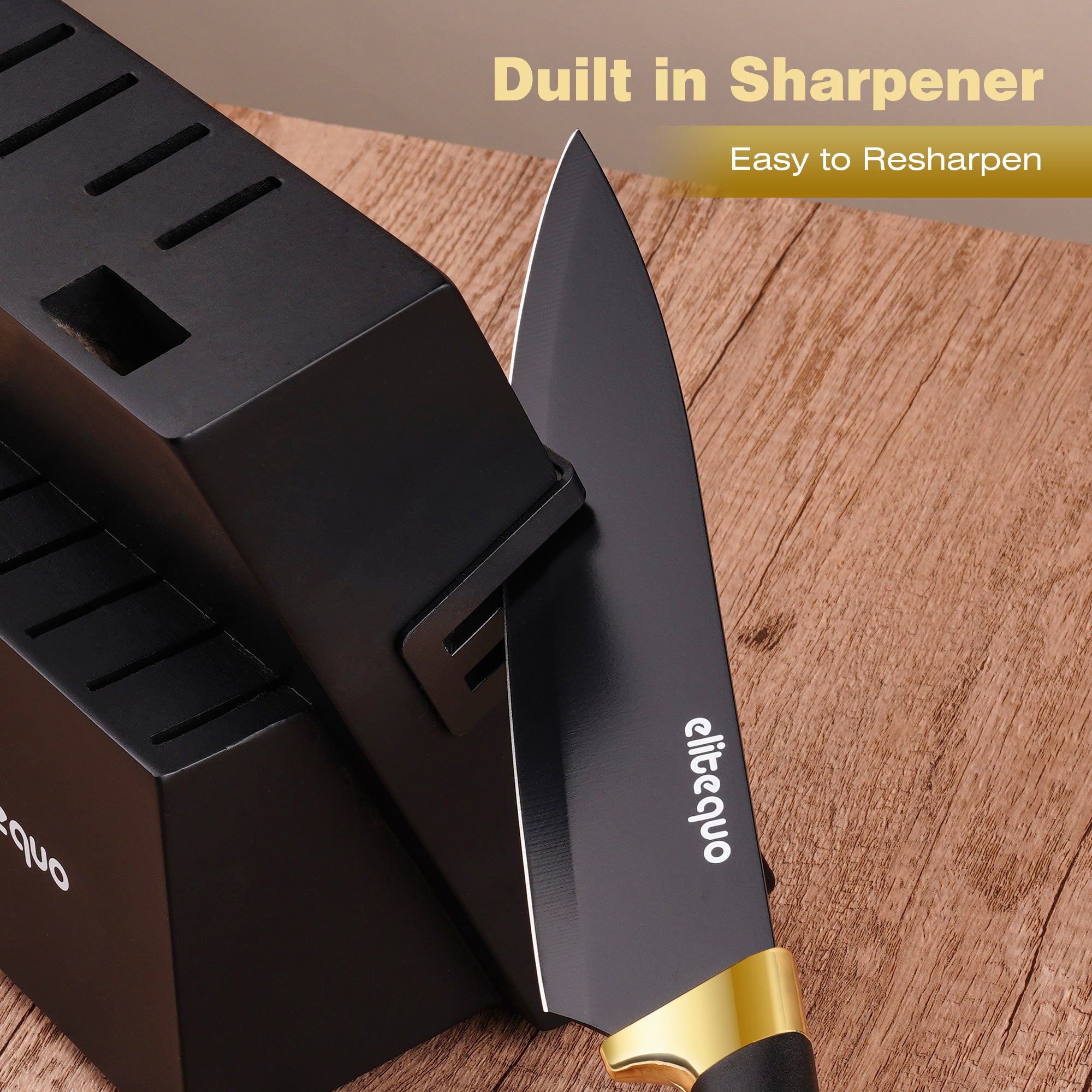 Knife Set With Block,Dishwasher Safe Kitchen Knife Set With Built-In Sharpener,German Stainless Steel Black Knife Block Set(Night Flash Series)
