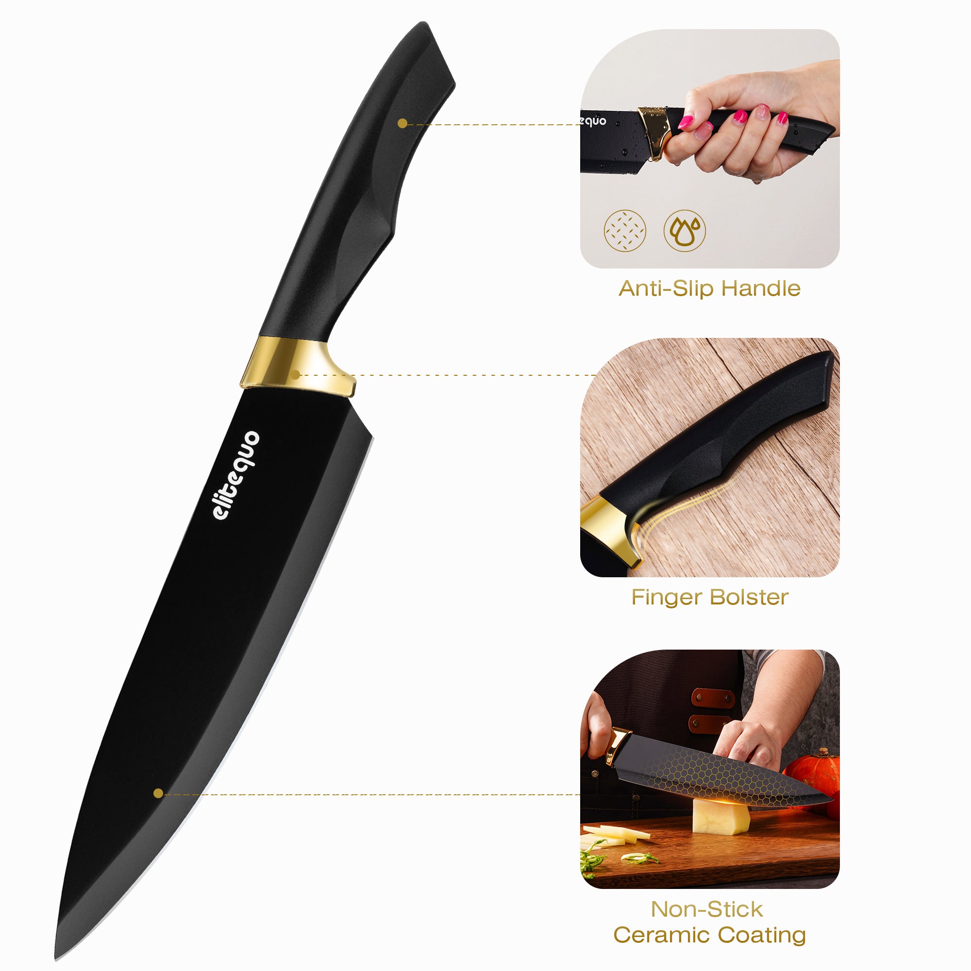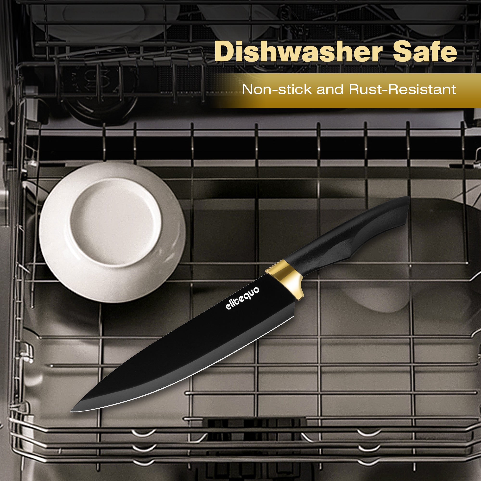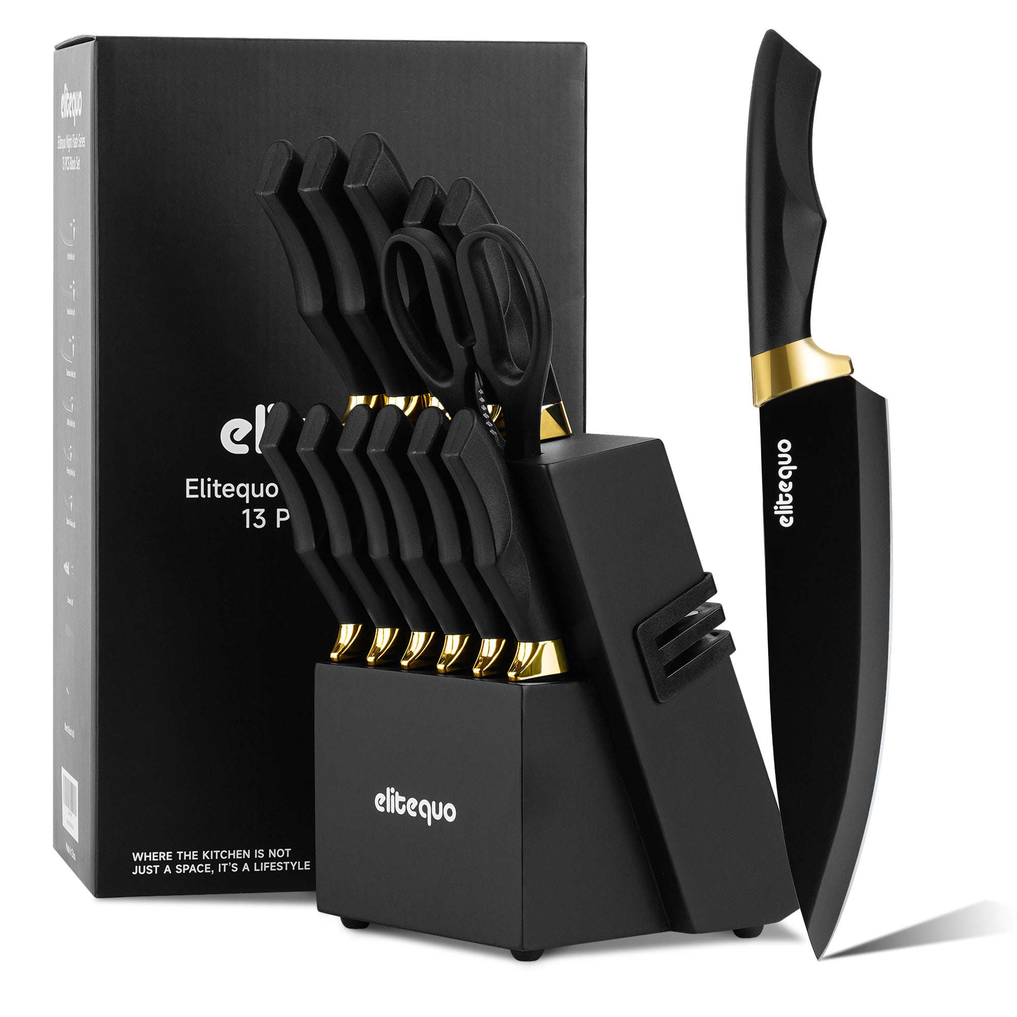 Knife Set With Block,Dishwasher Safe Kitchen Knife Set With Built-In Sharpener,German Stainless Steel Black Knife Block Set(Night Flash Series)