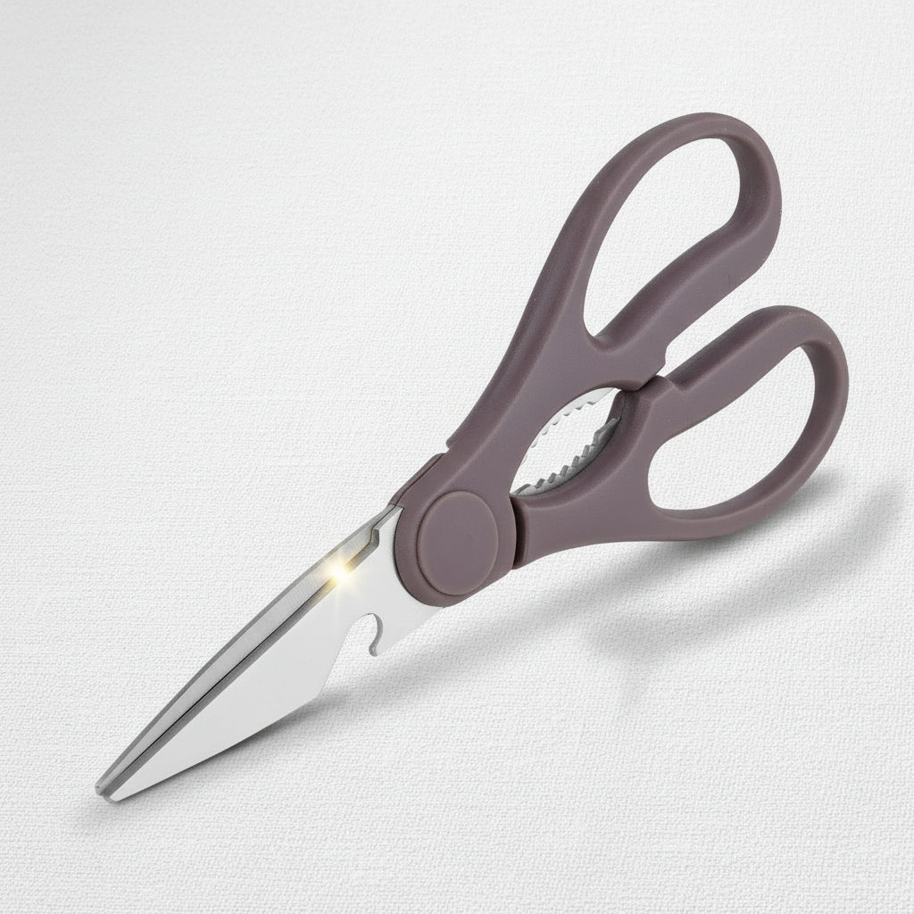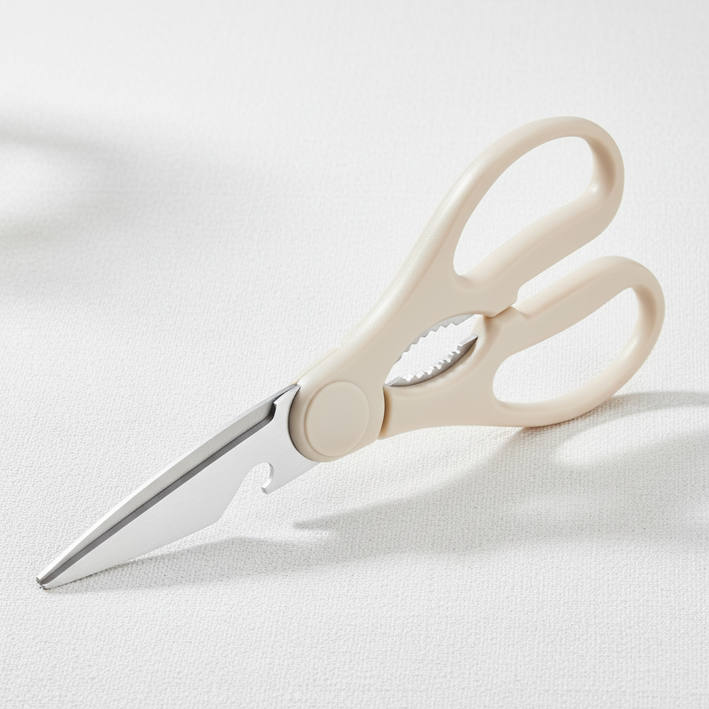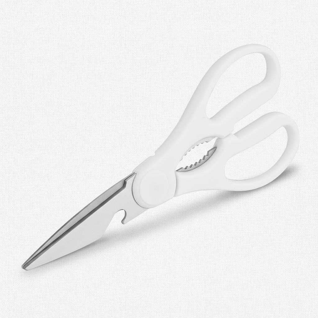 Meet the Pure Edge Kitchen Shear – your all-in-one cutting companion. Designed in a clean white finish with advanced micro-serrated blades, this versatile tool handles everything from delicate herbs to tough meats and even opens cans with ease. Engineered for precision, built for durability.