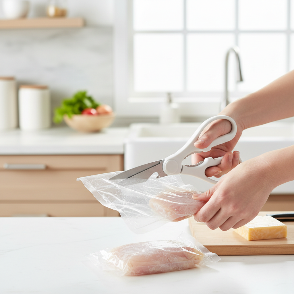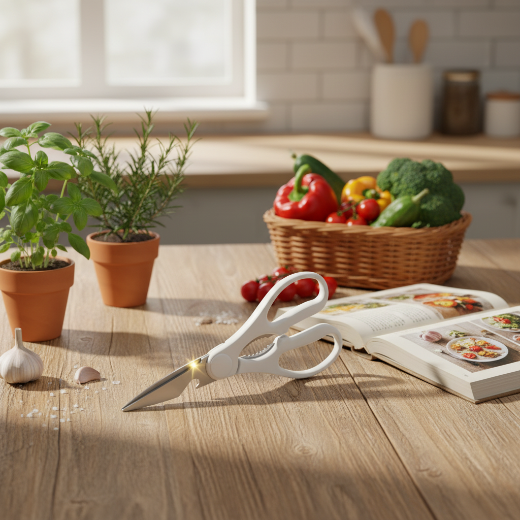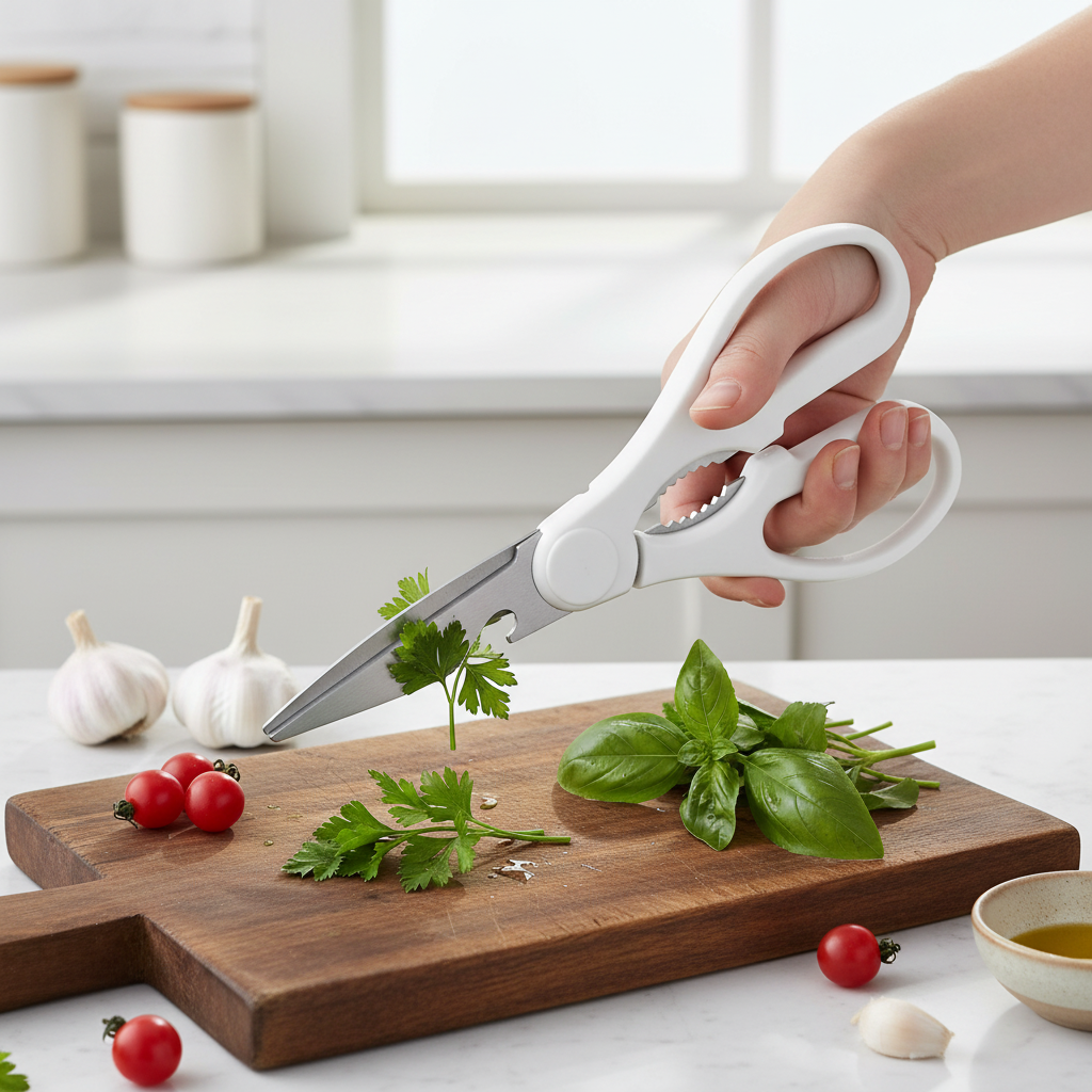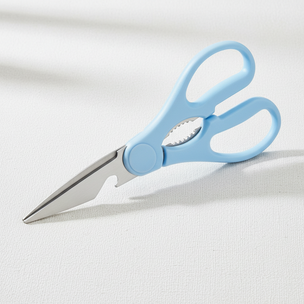Meet the Pure Edge Kitchen Shear – your all-in-one cutting companion. Designed in a clean white finish with advanced micro-serrated blades, this versatile tool handles everything from delicate herbs to tough meats and even opens cans with ease. Engineered for precision, built for durability.