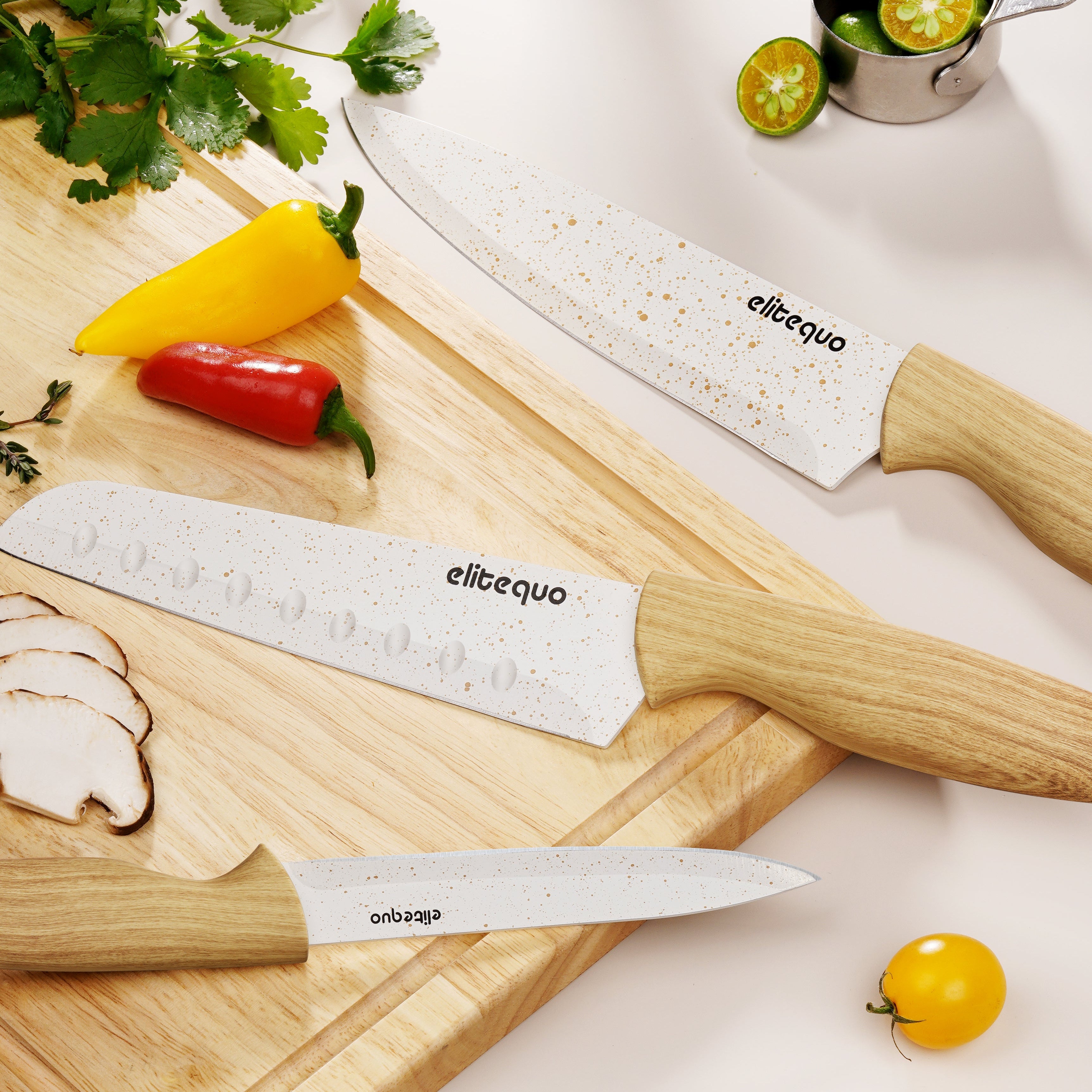 Transform your daily meal prep with this versatile knife collection that combines style and performance. From quick snacks to elaborate dinner preparations, this set covers all your cutting needs while adding a touch of modern elegance to your kitchen.